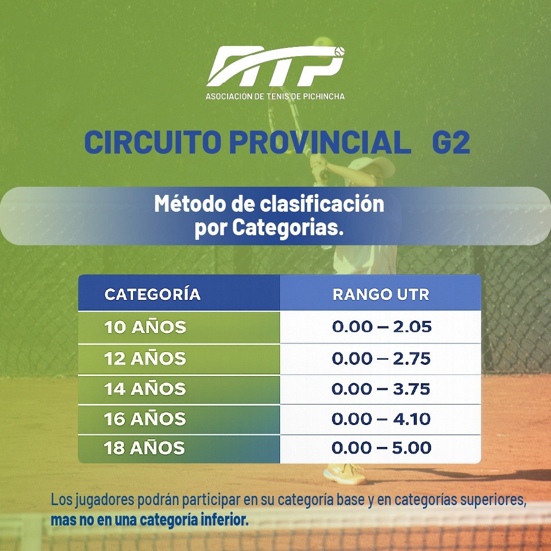 © ATP Ecuador, Asociación de Tenis de Campo de Pichincha. Todos los derechos reservados.