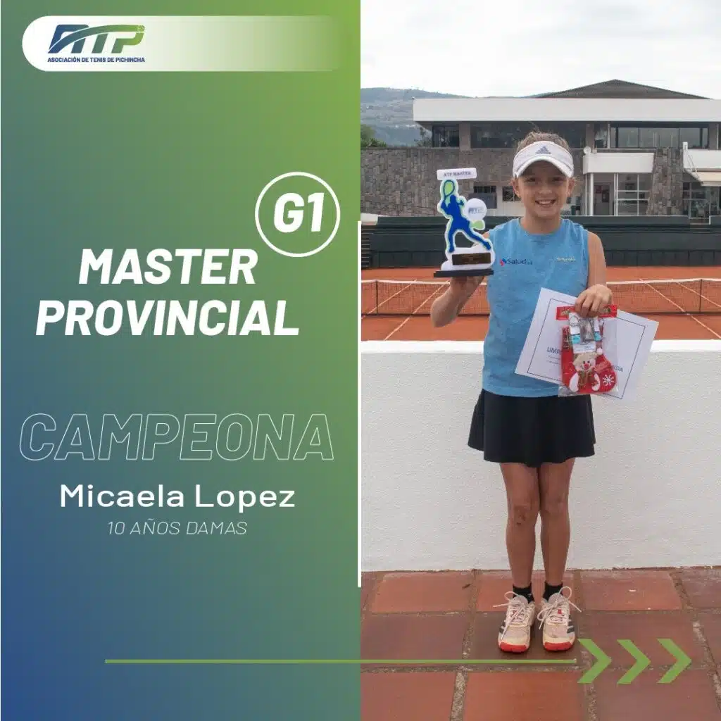 La Asociación de Tenis de Pichincha felicita a los ganadores y finalistas del MASTER G1 2025 DE 10, 14 Y 18 AÑOS, que se realizó en días pasados.
